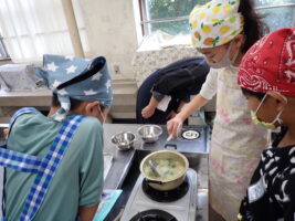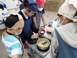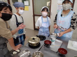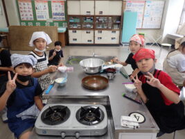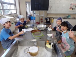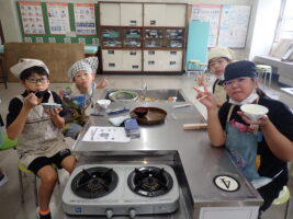5年生 家庭科の調理実習 青木北小の様子 2025/10/23 10月2日・3日・16日・17日に家庭科「食べて元気!ご飯とみそ汁」の学習で調理実習を行いました。 日本の伝統的な食事である和食で食事の役割について学習した上で、「ご飯」と「みそ汁」を調理しました。 普段から日常的に食べているご飯ですが、自分たちで調理すると格別においしいと感じたようでした。また、みそ汁では食材を切ったり煮たりと色々な工程がありましたが、班のメンバーと力を合わせてスムーズに調理を進めることができました。 調理実習のお手伝いに来てくださった保護者の皆様、ありがとうございました。