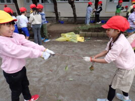 おいもほりのあとは、さつまいものツルを使って、様々な遊びをしました。なわとび、つなひき、飾りづくり。楽しそうにいろいろな遊びを試していました。