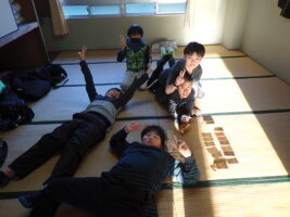 【5年生】大貫海浜学園④ 学園内での時間 青木北小の様子 2025/11/18 早めに学園に帰ってきて、部屋でのんびりしたり、副学園長先生より大貫のことをスライドショーでたくさん教えていただき学習したりしていました。順番にお風呂にも入りながら、部屋ごとに楽しそうにすごしていました。