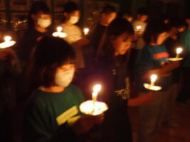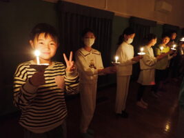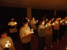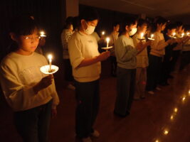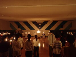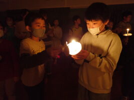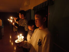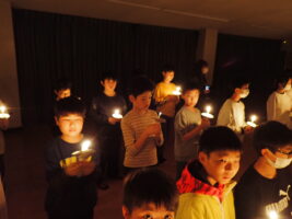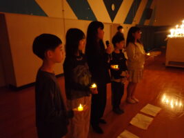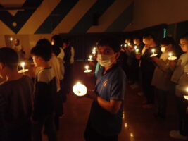 夜の活動はキャンドルファイヤーをしました。これまでも学校で練習を重ねてきました。火の長より、4つの火(「笑顔の火」「思いやりの火」「友情の火」「知識の火」)を与えてもらい、暗い中での4つの火が優しく明るく5年生を包んでくれていました。仲間と作った大きな光の輪を忘れずに、一人ひとり今日学んだこと、そしてこれからの決意を胸にさらに「成長」していけるといいなと思います。