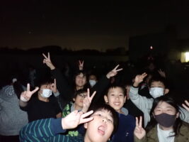また、屋上で星空観察もしました。澄んだ空にたくさんの星が輝いていました。流星群のピークも近く、「流れ星だ!」と声を上げる姿も見られました。