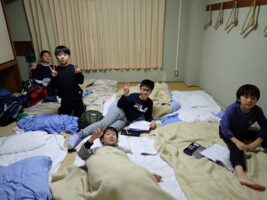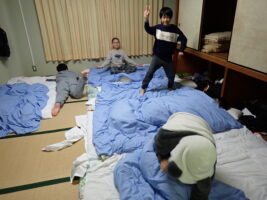 【5年生】大貫海浜学園⑦ 就寝準備 青木北小の様子 2025/11/192025/11/18 布団も協力して敷き、歯磨きや、荷物整理も終え、寝る準備万端! しおりの振り返りにもたくさんの思い出が書いてありました。しっかり寝て明日も頑張ろう!!