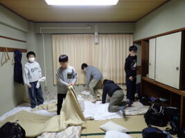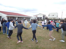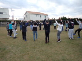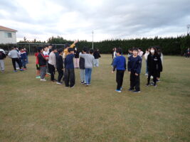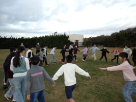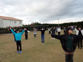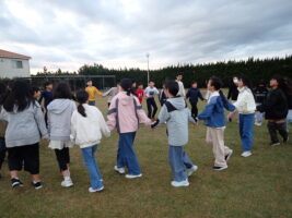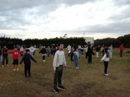 【5年生】大貫海浜学園⑧ 2日目の朝 青木北小の様子 2025/11/19 大貫海浜学園2日目。6時にすっきり起きれている子が多く、朝の支度をして、園庭へ…。 園庭での朝礼は、ラジオ体操やフォークダンスも踊りました。フォークダンスは体育でやっていたので、学年全体でやるのは2回目。どのクラスも朝から盛り上がっていました。今日も一日元気に過ごせそう!