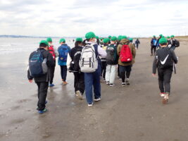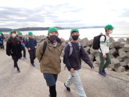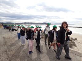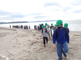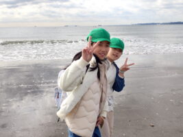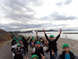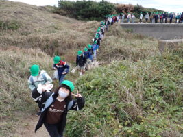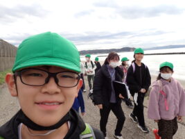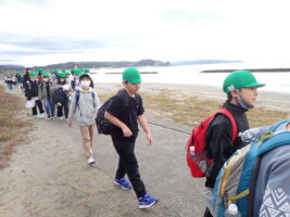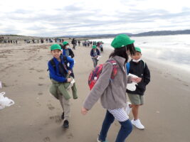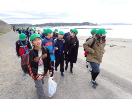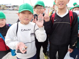 【5年生】大貫海浜学園⑪ 砂浜ハイキング 青木北小の様子 2025/11/19 大貫海浜学園を出発し、海を見ながらハイキング。今日は風も弱く、穏やかな海でした。途中砂浜を歩 くところもあり、貝をひろって歩く子たちも多かったです。歩きながら漁港も見学させてもらえました。貝殻やさくら貝だけでなく、落ちていたヒトデを持ち帰りたがっている子もいました。最後にお土産が増えて笑顔も思い出も増えたかな?