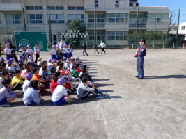 3年生 避難訓練と煙中訓練 青木北小の様子 2025/12/242025/12/23 11月26日(水)全校での避難訓練の後に、3年生は煙中訓練を行いました。消防署の方に来ていただき、消火器の使い方と煙中での避難の仕方を教えていただき、実際に体験しました。煙を吸わないように常にハンカチを持ち歩く大切さも改めて感じました。消防署の方への質問タイムもあり、子ども達は大満足のようでした。