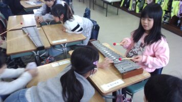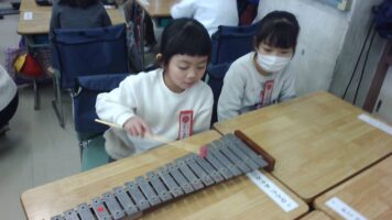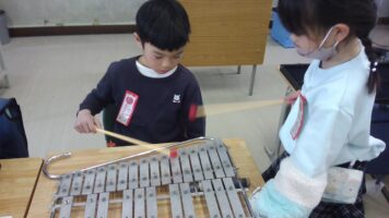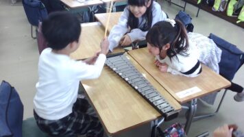 【1年生】鉄琴の学習 青木北小の様子 2026/01/28 1年生の音楽の授業では、鍵盤ハーモニカの他にも、様々な楽器に挑戦しています。中でも、最近の子ども達の楽しみは、鉄琴の練習です。鉄琴のきれいな音色が大好きな子ども達♪みんなで楽しく練習をしながら、きれいな音を奏でています。