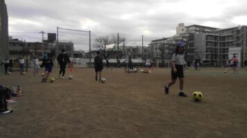 いつもの5分間走がドリブル五分間走に大変身・・!曲がり角でボールと一緒に曲がれるよう、みんな苦戦していましたが、繰り返し取り組み、ボールのコントロールが上達してきました。