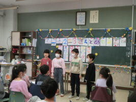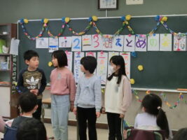 いよいよ明日で3学期も終わります。そこで、今日は各クラスでまとめの会をしました。どのクラスもとても楽しそうに行っていました。