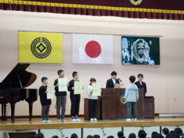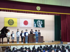 今日は修了式でした。修了証は5年生の児童が代表で受け取りました。