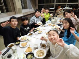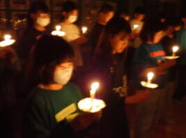 夜の活動はキャンドルファイヤーをしました。これまでも学校で練習を重ねてきました。火の長より、4つの火(「笑顔の火」「思いやりの火」「友情の火」「知識の火」)を与えてもらい、暗い中での4つの火が優しく明るく5年生を包んでくれていました。仲間...